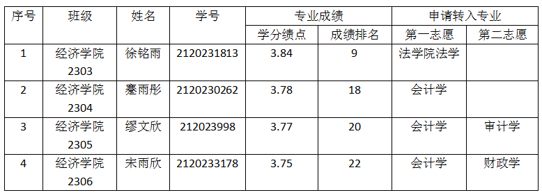 根据南京财经大学教务处《关于2023级本科生转专业工作安排的通知》(南财教字〔2024〕26号)相关要求,经我院转专业与专业分流工作领导小组审核,现将本学院2023级达到转出条件的学生名单予以公布。