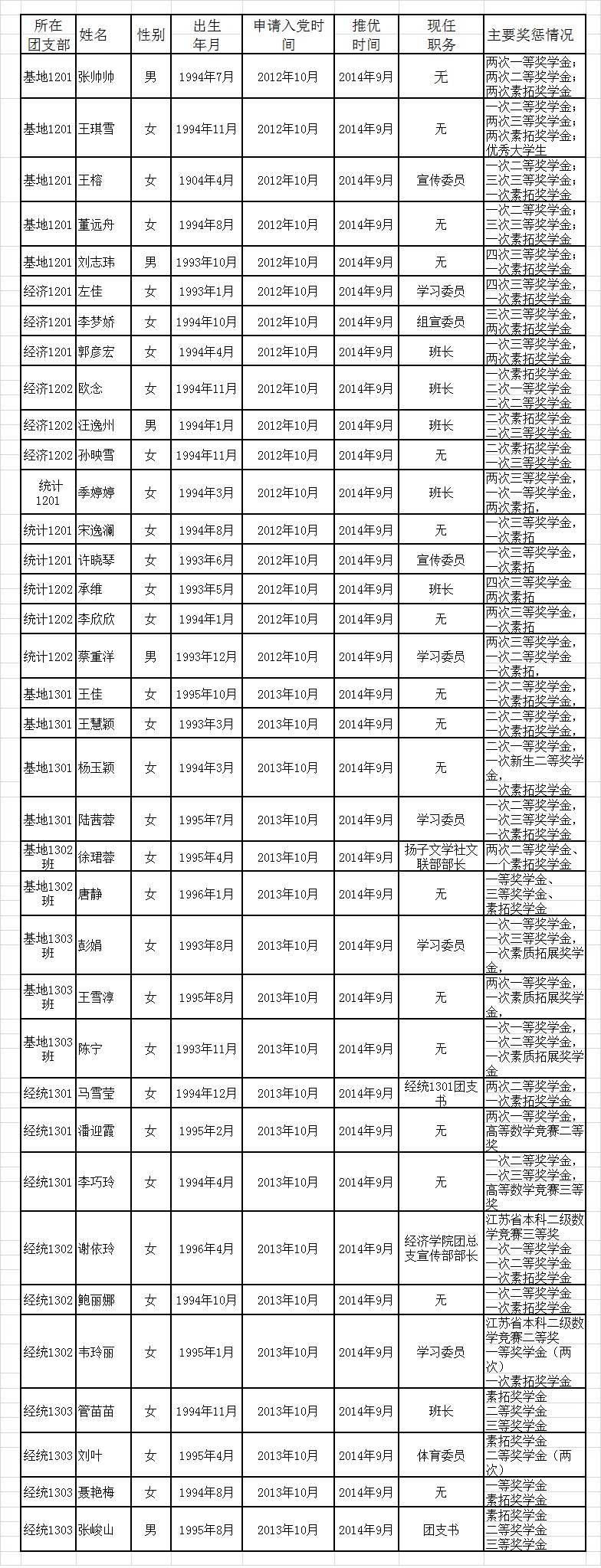 经济学院学生党员发展公示