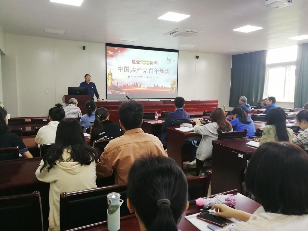 本次党课概括讲述了中国共产党成立一百年的历史,并将一百年的历史分为开天辟地、改天换地、翻天覆地和惊天动地四部分,分别追溯了中国共产党救国、兴国、富国和强国的奋斗历程。党课伊始,陈书记带领大家回顾了建党初期中国共产党对中国革命道路的艰难探索历程,在这个过程中党带领人民流血牺牲、历经千难万险换来了新中国的成立。改天换地部分讲述了中国共产党如何带领全国各族人民在社会主义革命和建设时期完成兴国大业,并通过对比自己小时候见到的第一辆拖拉机和如今家家户户拥有家用汽车的生活水平的改变,印证了中国共产党为人民谋幸福,为中华民族谋复兴的初心和使命。翻天覆地这部分是中国共产党在改革开放和社会主义现代化建设新时期的历史,在这部分的讲述中陈书记将“摸着石头过河”的改革开放的探索与统计中最小二乘参数估计方法相结合,分享自己在课程思政建设中的思考。在第四部分总结了在习近平新时代中国特色社会主义思想的指引下,党和国家事业的历史性成就和历史性变革。党课的最后一部分,陈书记讲述了中国共产党百年探索中总结出的宝贵经验。