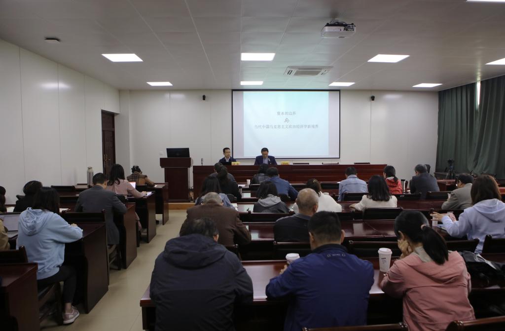 4月12日下午,我院联合校党委宣传部、学校教师(教学)发展中心在德经楼307会议室共同举办题为“资本的边界与当代中国马克思主义政治经济学新境界”的专题报告会。报告会由校党委常委、党委宣传部部长石奇主讲。报告会由院长朱红根主持。党委宣传部、图书馆、经济学院等相关部门工作人员和教师代表到场聆听报告。