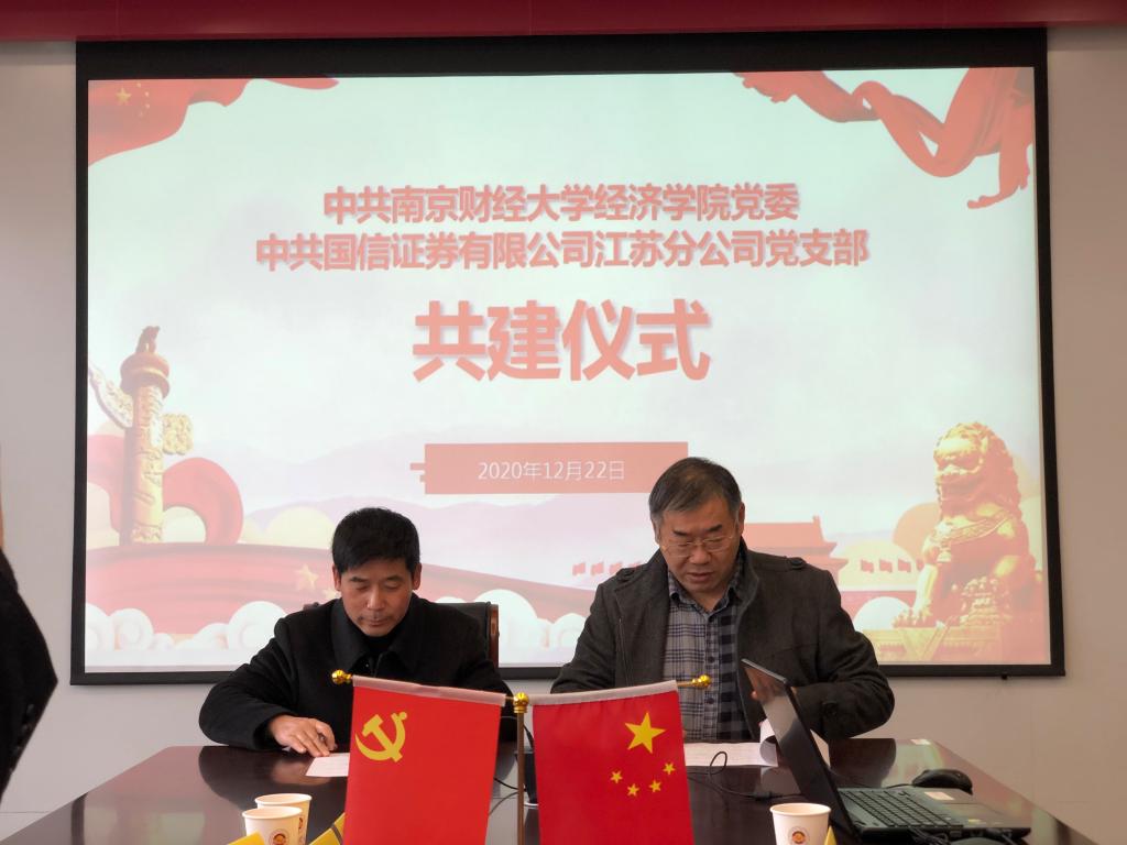 随后,经济学院党委与国信证券股份有限公司江苏分公司党支部签署党建共建协议并合影留念。