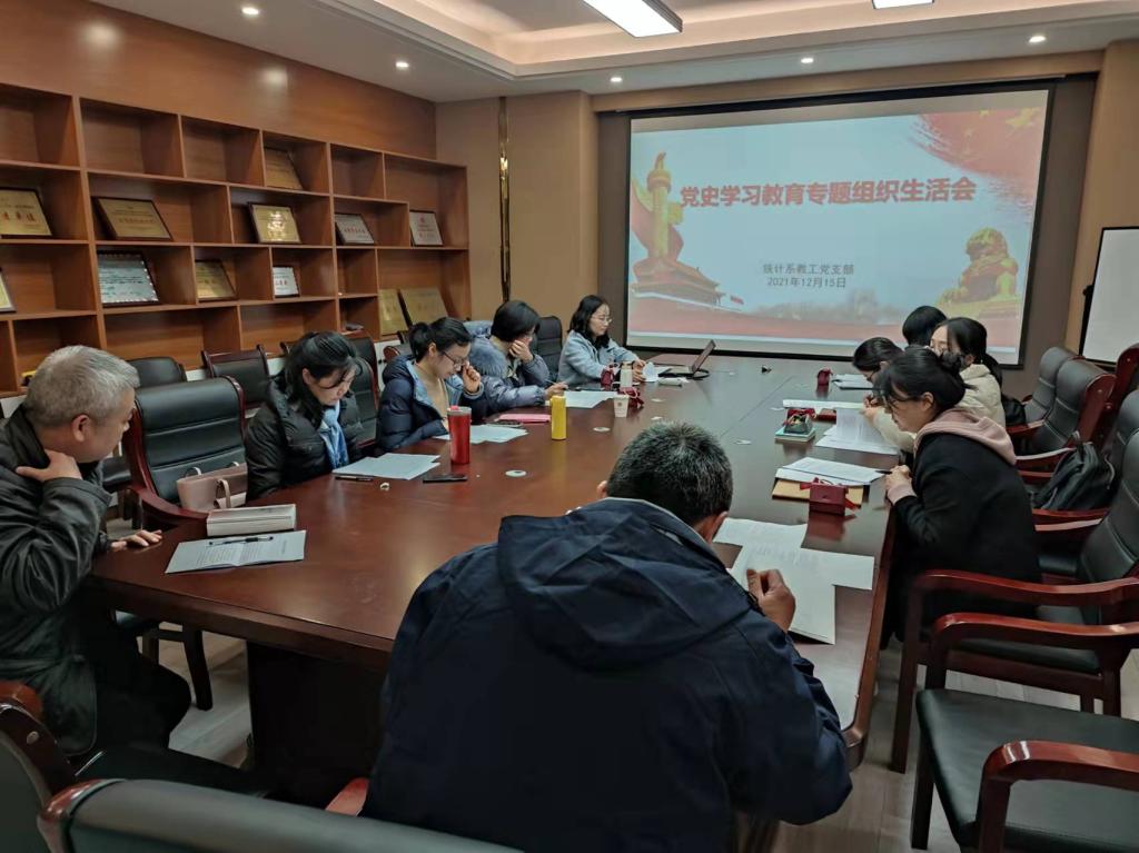 12月15日下午13:20,统计系教工党支部在德经楼307会议室召开党史学习教育专题组织生活会。活动由支部副书记王平平同志主持,支部全体党员教师参加。
