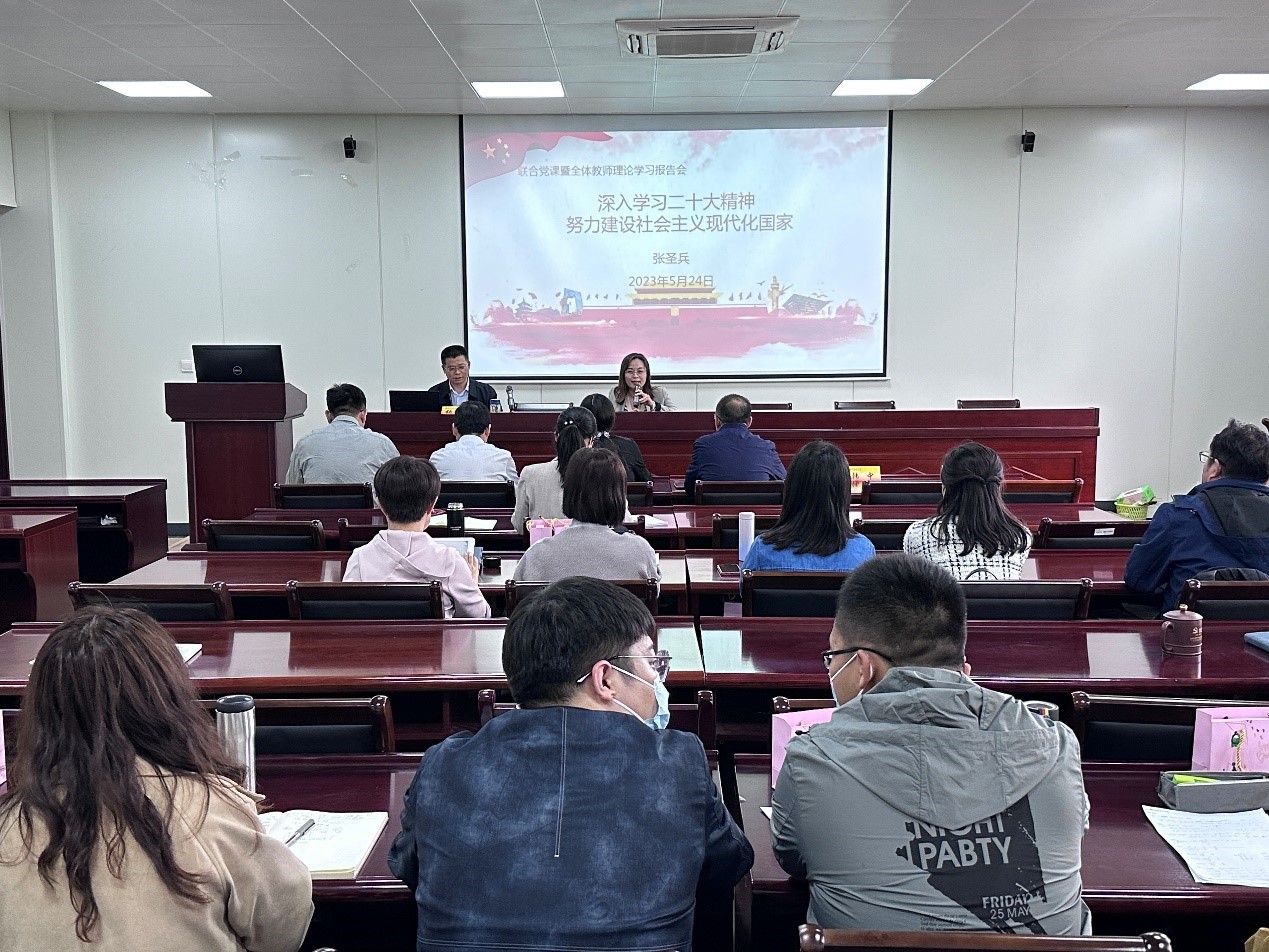 5月24日下午,我院在德经楼307会议室召开学习贯彻习近平新时代中国特色社会主义思想主题教育专题党课暨党建联盟共上一堂课。经济学院党委书记张圣兵教授做《深入学习党的二十大精神 努力建设社会主义现代化国家》专题党课,党委宣传部副部长秦韶华、学术期刊部副主任原小能、经济学院全体教工党员参加学习,党课由经济学院党委副书记贾亦璞主持。