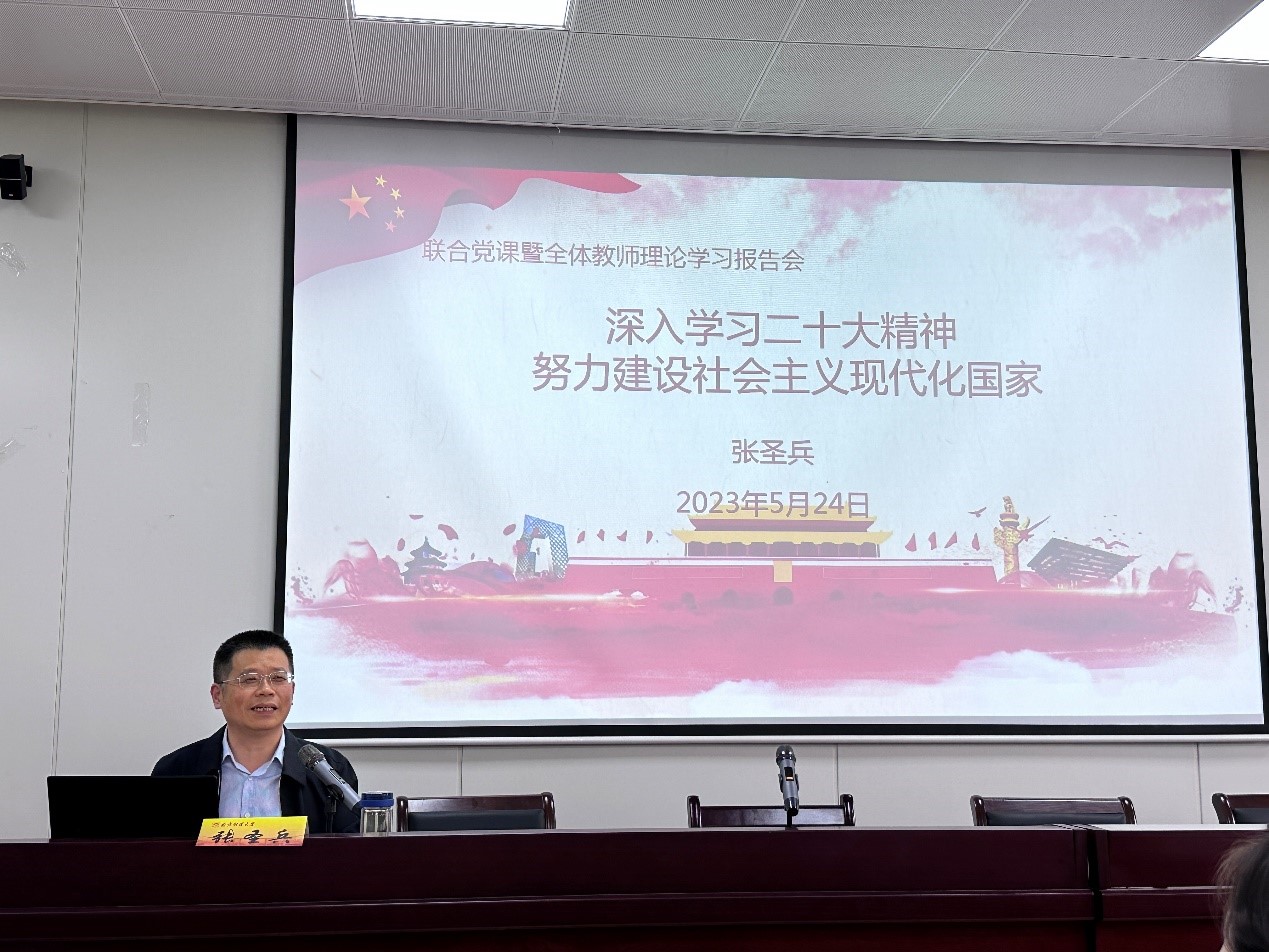张圣兵书记从党的二十大召开背景讲起,仔细解读党的二十大报告十五部分内容,深刻阐述十年来“三件大事”、“三个务必”、马克思主义中国化时代化“六个必须”、新时代新征程党的中心任务、中国式现代化、“五个重大原则”、全过程人民民主、“五个必由之路”等党的二十大报告热词。张书记重点强调了深入学习党的二十大精神的落脚点,认真领会党中央关于教育、科技、人才工作统筹安排、一体部署的重要意义。并鼓励教师党员们将党的二十大报告中的真知灼见带入“双一流”建设和新时代教育高质量发展改革中,踔厉奋发,勇毅前行,书写属于新时代的新篇章。