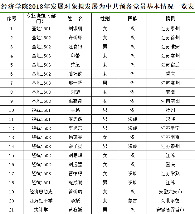根据《发展党员工作实施细则》有关规定,经学院基层党支部考察、学院党委预审,拟接收刘淑娴等21名同志为中共预备党员。现将名单予以公示: