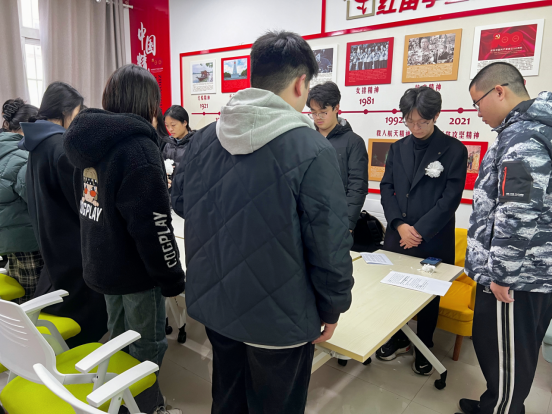 国行公祭,法立典章。2024年,是南京大屠杀惨案发生87周年,也是国家公祭日设立十周年。为铭记历史,缅怀遇难同胞,12月11日下午,我院于“红苗学堂”一站式学生社区开展“铭记苦难历史,汲取前行力量”国家公祭日纪念活动,学院政治辅导员、党委副书记贾亦璞,党支部书记黄晓娟、梁少颖,团委书记潘怡,部分预备党员及团委副书记参加此次活动。