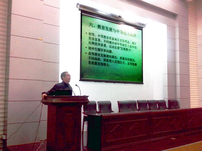 讲座一开始,叶老师鲜明地指出中国能否顺利进入高收入国家的关键是能否以可持续的方式保持经济的高速增长,但是目前中国经济高速增长面临着传统发展模式难以为继、过于倚重投资驱动、分配失衡等问题。然后,通过总结成功迈入高收入国家的经验以及掉进“中等收入陷阱”国家的教训,叶老师认为中国要避免掉进“中等收入陷阱”,应该重点做好三个方面工作:①缩小收入差距,消除分配不公;②增加创新能力,成为科技创新强国;③改革教育体制,增加人力资本积累。叶老师列举大量实例,深入浅出地剖析了“中国该如何避免陷入中等收入陷阱”的问题。叶老师的演讲风格风趣幽默、具体生动,精彩的演讲调动了现场的气氛,激发了广大学生的热情。活动结尾的现场问答环节,同学们提问踊跃,把此次讲座推向了高潮。