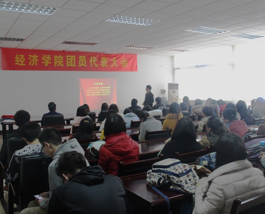 本次大会在经济学科楼307室召开。与会代表有:经济学院学工秘书尹海燕老师、团委书记徐昊翔老师、经济学院团委会全体成员、学生会成员代表、班级团支部学生代表等。此次大会由徐昊翔老师主持,选举由院团委副书记陈栋同学主持。