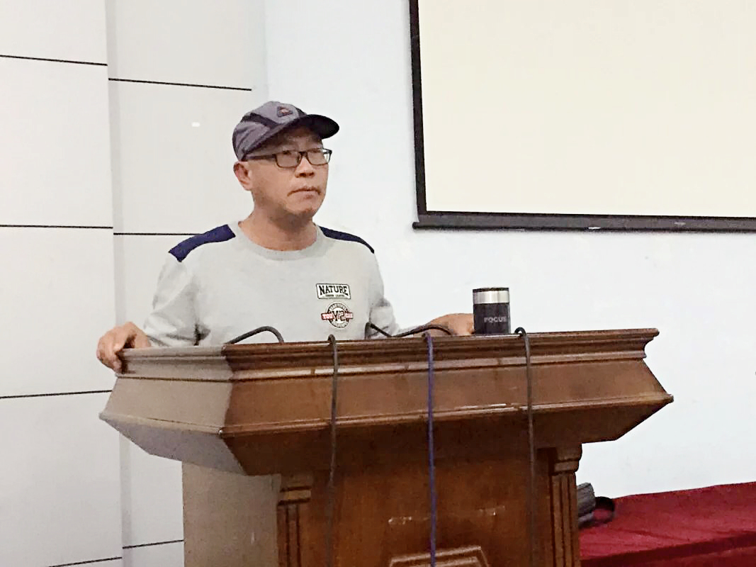 宣讲开场是一段中央电视台采访丁兆瑞先生的专题片《绿色长征——丁兆瑞》,讲述了丁先生三次“绿色长征”的经历:分别是1998年、2000年、2001年,他三次“长征”行走两万多公里,历尽千辛万苦,就是想用双脚证明,虽然个人的力量是有限的,但环保的真理是无穷的。丁兆瑞先生对环保的热爱与奉献感动了在场的每一个人,大家不由自主地为他点赞鼓掌。丁兆瑞先生说,“环保无处不在,任何人的行为,任何企业生产的产品,任何民族的宗教信仰,任何国家制度的建立都与环保息息相关。”他从自己的见闻入手,通过山西矿难、大庆群鸟、东光县企业等例,强调了资源的稀缺性,号召大家从身边小事做起,一起做环保。