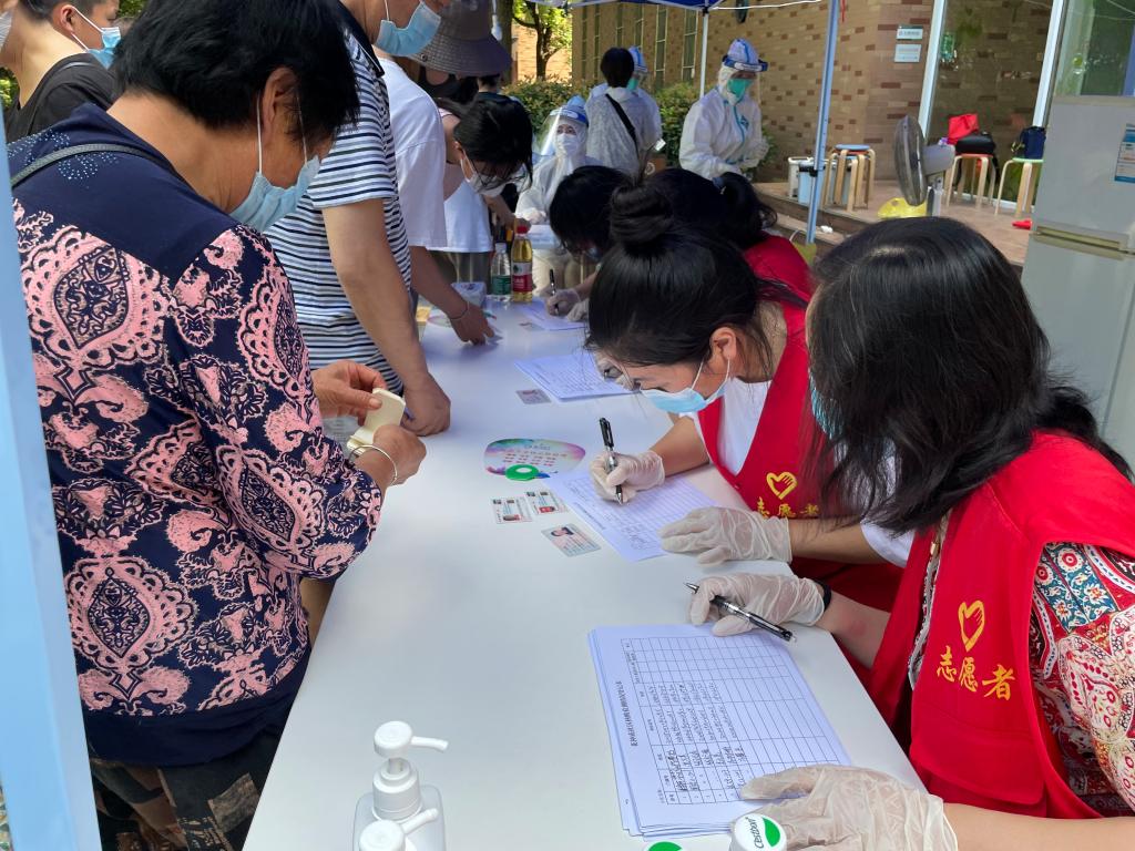 经济学院学生抗疫志愿者在核酸检测点进行信息登记
