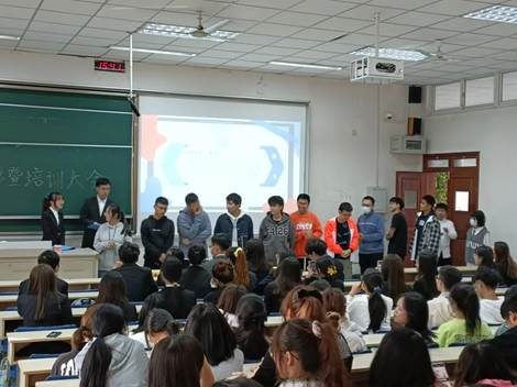 随后,学生会综合事务中心、媒体融创中心、服务维权中心、素质拓展中心、对外交流中心、学业发展中心的部长们依次上台介绍各中心的具体职能和工作安排,发表部长寄语,阐述未来展望,给予志愿者们鼓励与肯定。志愿者们也进行了独具特色的个人介绍,他们用幽默风趣的语言拉进了彼此间的距离,让整个大会的氛围明快而又温馨。