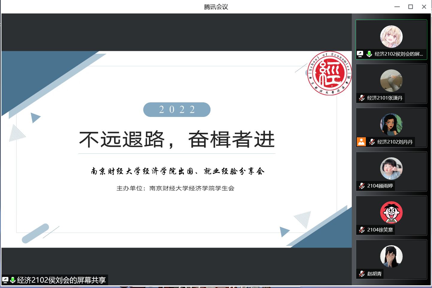 为增加同学们对出国与就业的了解,5月20号晚,经济学院于线上召开“不远遐路,奋楫者进”出国、就业经验分享会。本次活动邀请到的分享嘉宾是被英国格拉斯哥、南安普顿大学录取的经统1801吕建奇同学、被英国格拉斯哥大学录取的经济1803葛菲同学、被中国工商银行股份有限公司盐城分行录取的经统1801黄同峒同学和被无锡小天鹅电器有限公司录取的经统1801邱赛娟同学。
