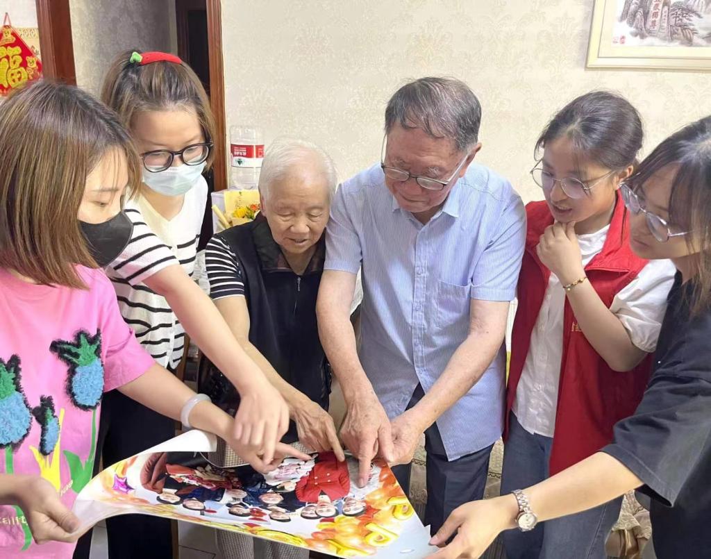 当天上午,志愿者们带着水果与鲜花等慰问品,敲响了两位老先生的门。在董伦老先生家中,他向志愿者们介绍了抗美援朝战役的历史背景,让志愿者们直观感受到了中国人民志愿军的献身精神。在提及中共中央作出“抗美援朝,保家卫国”的战略决策时,董伦老先生眼中饱含热泪。他亲切地讲述了自己的军旅生活,作为一名标图员,他积极参战,通过雷达传递的信息,在地图上快速标注敌机位置并上报给领航员帮助指挥作战。通过董伦老先生的描述,志愿者们仿佛置身于那个战火纷飞的年代。一块块荣誉勋章也让志愿者们更深刻地感受到了抗美援朝老兵的拳拳爱国之心。最后,董伦老先生在感慨如今的幸福生活的同时,也希望所有新时代青年好好学习,为时代发展做贡献。