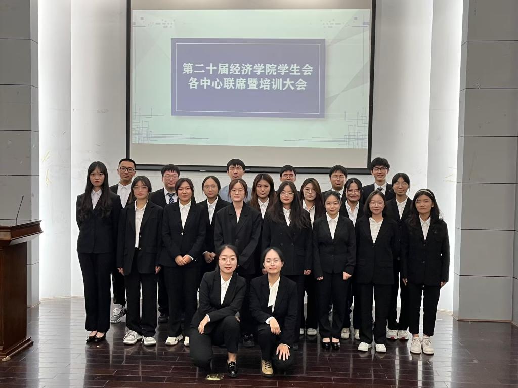 在大会的最后,各中心依次上台拍摄中心合照,“鲜衣怒马少年时”,照片将快乐的时光定格于此,每一帧都泛着青春的亮色。“博观而约取,厚积而薄发”,照片中青年们尚显稚嫩,但未来这一年他们定能在经济学院学生会大展拳脚,奉献力量。