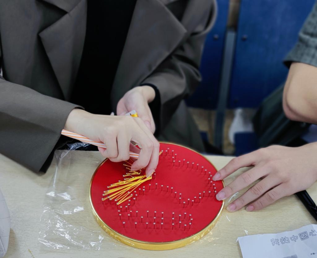 绘崭新华夏,描异彩神州。24日上午,经院学子们在德正楼104开展中秋和爱国主题文创产品手工制作。金秋十月,红旗猎猎;同心合意,庶几有成。同学们有的认真拼装灯笼,全神贯注;有的仔细绘制图画,满怀热忱。双兔相对笑,莲花托底开。转边绕,流光溢彩,流苏带霞。月到中秋偏皎洁,偏皎洁,却道阴晴圆缺。在同学们的共同合作下,一个又一个手工作品逐渐成形,精致美丽、引人注目。他们用赤忱的心为冰凉的颜料增添温度,将对祖国母亲的爱意与敬意呈现得淋漓尽致,用手工作品表达对党和国家的赞美以及对未来的美好期盼。