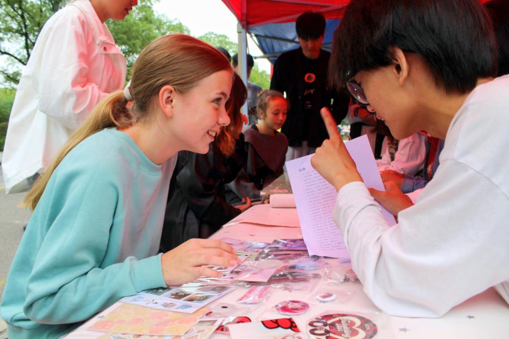 此时共赏月,心祝国安宁。24日,院团委在西苑六食堂前开展以对诗为主要内容的庆中秋·迎国庆活动。“洒入银河波底月,笛吹玉桂树梢风。”“至今不会天中事,应是嫦娥掷与人。”“海上生明月,天涯共此时。”一句句脍炙人口的诗词佳句,不仅展示了中华文化的博大精深和源远流长,也鼓励着当代青年传承和弘扬中华民族的传统文化。几位外国留学生也被活动所吸引,即使中国古诗词的朗读及理解对他们来说存在些难度,但对中国古文化的向往与探索欲带领他们了解古诗词的含义和韵味,感受到中华文化的魅力,并最终在同学的鼓励与带领下顺利朗诵出古诗词。外国同学们纷纷表示,很开心能借此机会接触和了解中国诗词文化,领会中国传统文化的独特魅力。