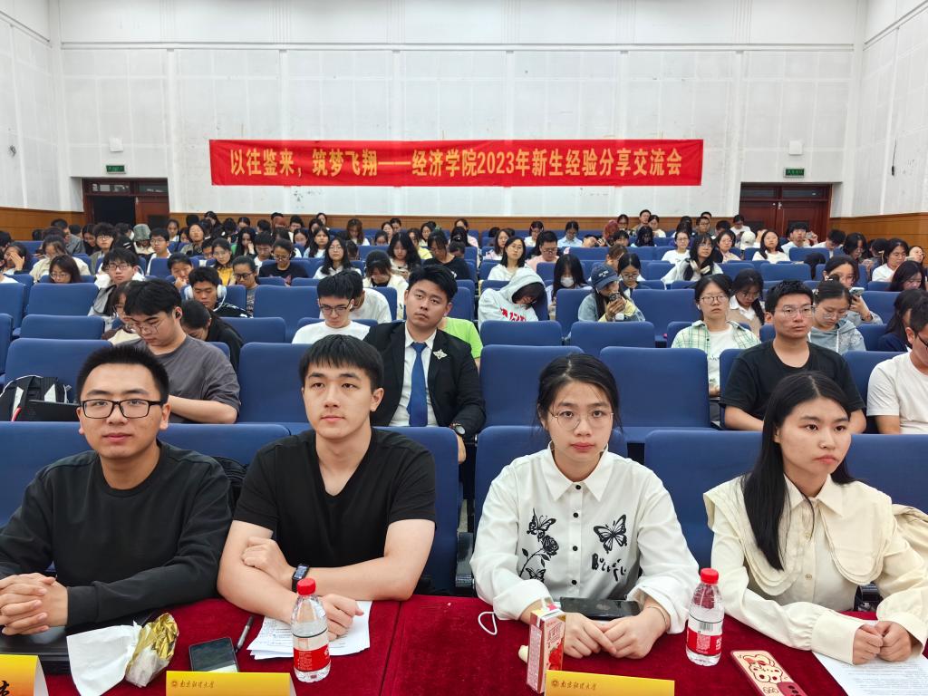 9月22日晚,我院于德济楼二楼报告厅举办了“以往鉴来,筑梦飞翔”新生经验分享交流会。本次活动邀请了经济2101班的徐晓宁同学,数经2101班的张雅玲同学,经统2102班的游涛同学和数统2101班的王星杰同学作为嘉宾分享宝贵经验,我院部分2023级新生参加活动。