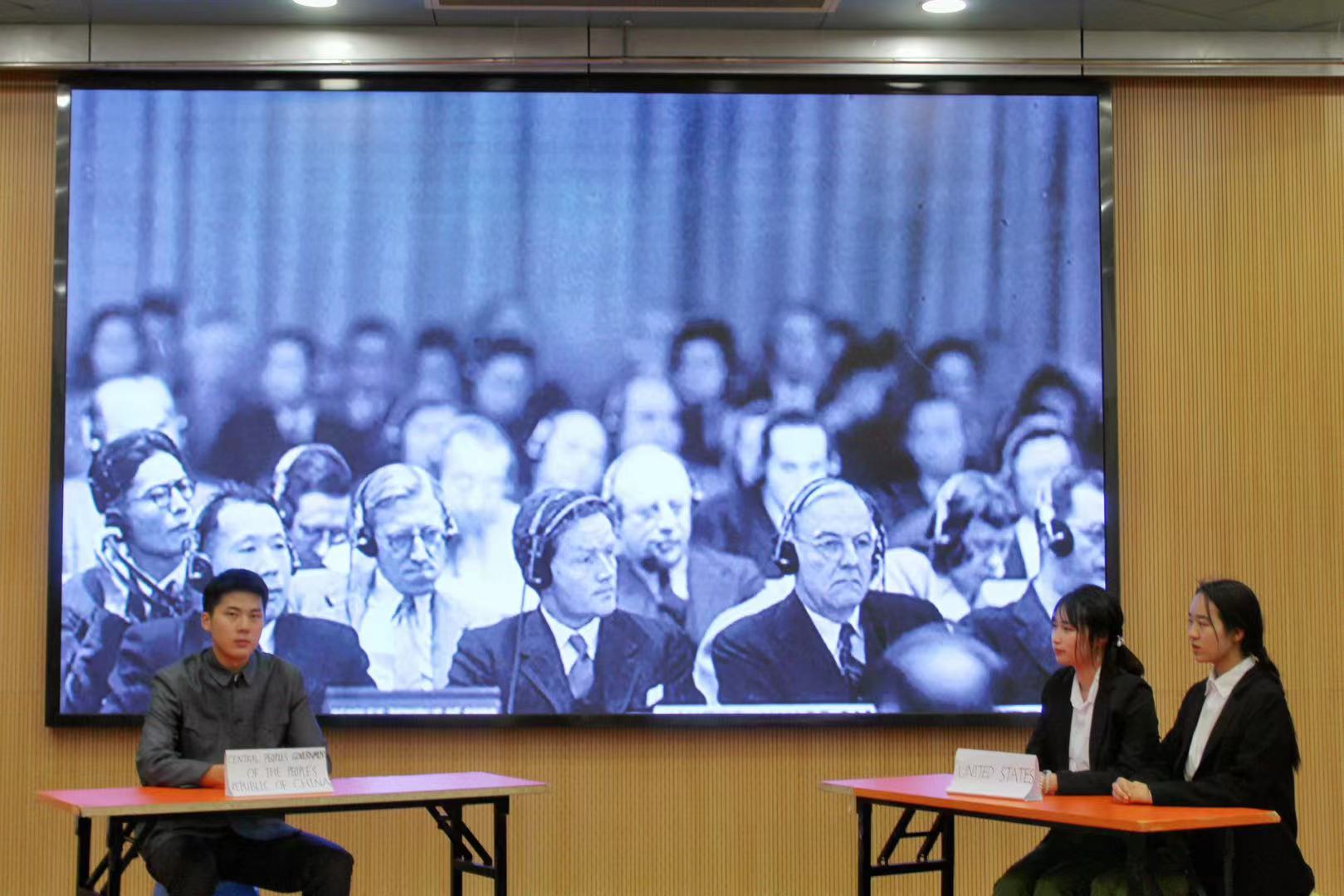 第四组学员演绎的《新中国二三事》通过当代青年回到新中国成立时的独特视角,再现了雄伟壮观的开国大典,带领观众们看见了文工团在街头宣传党的相关政策,见证了抗美援朝烽火狼烟的战场,目睹了在联合国会议上国家代表霸气的发言,见证了1954年《中华人民共和国宪法》的颁布。再回到新时代,青年学子们通过昂扬的表演传承爱国精神,歌颂壮丽华夏。