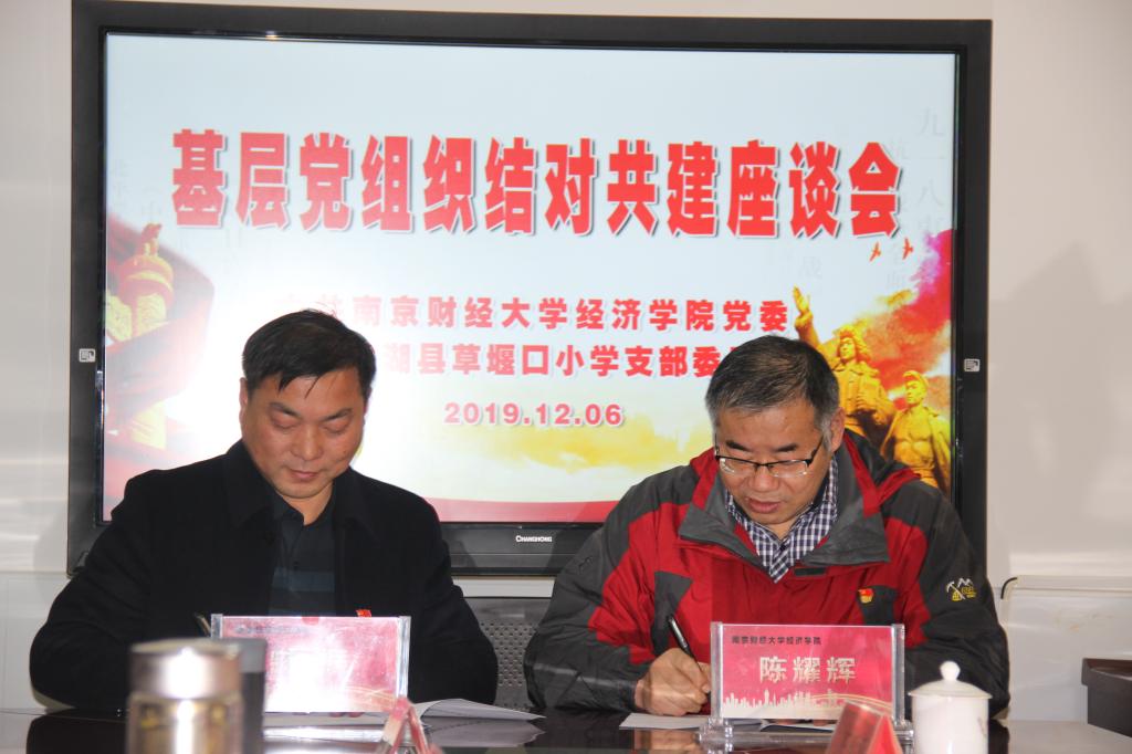 为深入学习贯彻习近平新时代中国特色社会主义思想,落实党的十九届四中全会精神,创新党建工作载体,提升基层党建工作质量,巩固“不忘初心、牢记使命”主题教育学习实践成果,促进教育资源共享与城乡党建工作交流,中共南京财经大学经济学院党委与中共南京中华财院草堰口希望小学党支部经友好协商,确立为党建结对共建单位。