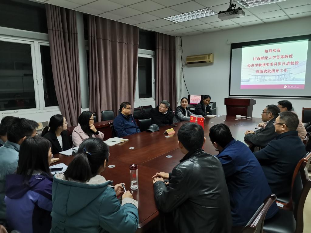 11月29日,应我院邀请,教育部高等学校经济学类教学指导委员会委员、江西财经大学首席教授罗良清教授、教育部高等学校统计学类教学指导委员会委员、南京审计大学统计科学与大数据研究院院长林金官教授在仙林校区德经楼307会议室作了题为“国家一流专业建设内涵”的讲座。座谈会由经济学院院长朱红根教授主持,学院各专业系主任及相关教师参加了此次讲座。