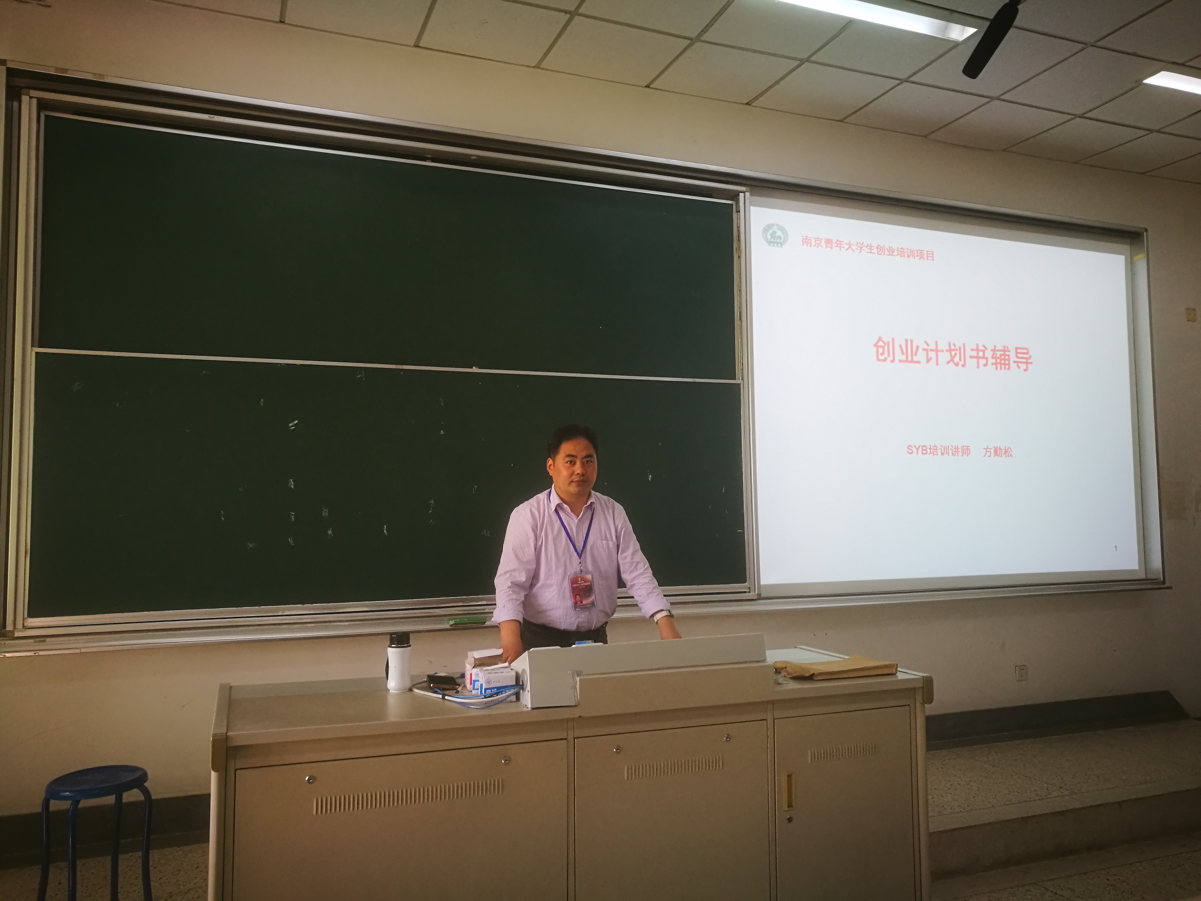 5月4日下午,我院“2018年互联网+创新创业大赛”系列培训的第一场在德经楼03教室顺利举行。本场讲座以“商业计划书撰写”为主题,由中邮通建设咨询有限公司培训中心主任、南京市SIYB培训讲师方勤松老师主讲。