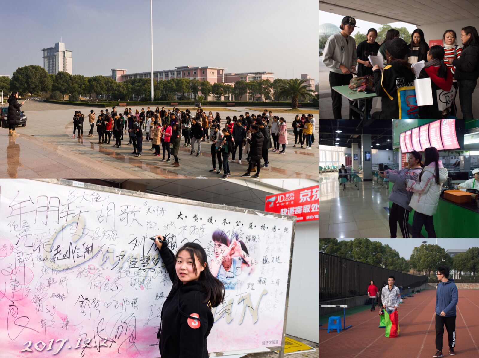 “寻觅美食”关卡设在西苑食堂,同学们根据小纸条上的菜品提示,寻找相应的食堂窗口并合影,交与工作人员即可获得一枚贴纸。领到小纸条的参赛者有的陷入沉思,仔细回想吃过的菜品名称;有的迅速进入食堂,进行地毯式搜索,寻找正确的食堂窗口。镜头拉倒西苑篮球场,“快乐抱抱爆”现场已是欢声一片,竞争激烈:同学们两人一组,背靠背夹着气球跑向篮球场另一端,在终点奋力将气球挤爆。图书馆的书香地则是另一番安静的景象,同学们屏息凝神,开启了一分钟的“火眼金睛”模式。……同学们顶着寒冷的天气,坚持奔跑,在校园各地完成各个关卡,不惧疲惫,为公益前行。