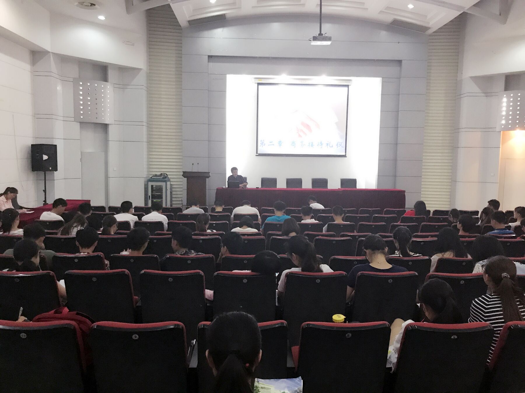 不学礼,无以立。中国自古以来是礼仪之邦,礼仪文化是中华民族几千年来灿烂传统文化的重要组成部分。6月1日晚,我院在经济学科楼报告厅开展商务接待礼仪讲座 。本次讲座由国际贸易学院副教授、国贸系系主任程进老师主讲。