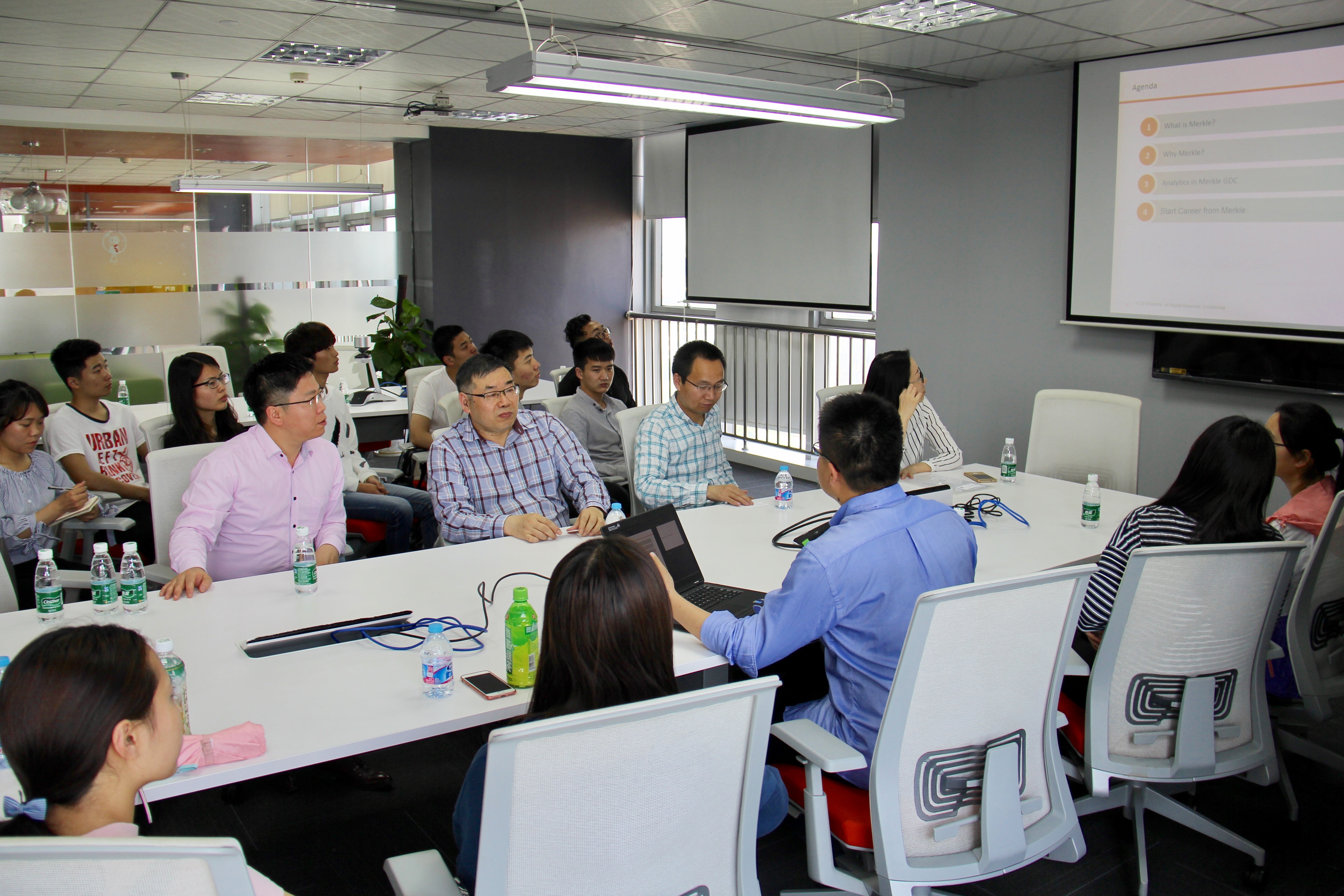 美库尔公司数字分析方案总监邓志刚代表公司对我院来访教师和同学表示热烈欢迎,并向同学们具体介绍了美库尔公司的主要业务、企业文化,以及公司在人才引进、促进员工发展等方面的具体举措。邓总监对目前在美库尔公司工作的十余位经济学院毕业生、实习生的综合素养表示了充分肯定和称赞,并表示愿意和学校一道,开展深入交流和合作,不断提高人才培养质量,实现校企双赢。我院陈耀辉书记对美库尔公司一直以来的支持表示感谢,并提到,在当前形势下,我院结合经济统计学专业特点和学生特点,在继续做好理论教学的基础上,也在通过多种渠道不断提高学生的实践能力。他希望学院与美库尔公司之间的交流与合作能够向多模式、深层次方向发展,并邀请美库尔公司参与到学生的实习、实训教学环节中,共同培养适合社会发展需要的大数据相关应用型人才。美库尔公司营销方案部(高级分析)经理陈敏以案例分析的形式给在校同学介绍了公司的主要业务及相关能力要求,并带领同学们实地参观了公司各个部门。