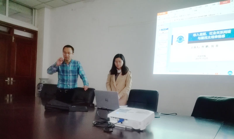 2017年5月2日晚上6点,长三角收入分配与经济增长研究中心在我院会议室举行了第十三次学术活动。我院副院长叶林祥教授主持了此次报告会。我院和财政与税务学院部分教师和研究生参加了本次学术讨论活动。本次报告的论文题目为“收入差距、社会关系网络与居民主观幸福感”,论文作者为我院青年教师詹鹏博士和硕士研究生倪蓉,论文由倪蓉报告。