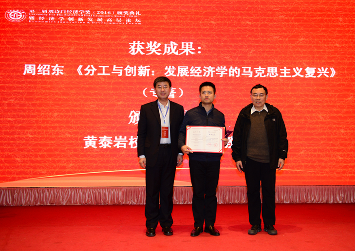 近日,第三届“刘诗白经济学奖”颁奖典礼暨经济学创新发展高层论坛在北京隆重举行。我院周绍东副教授的专著《分工与创新:发展经济学的马克思主义复兴》获奖。