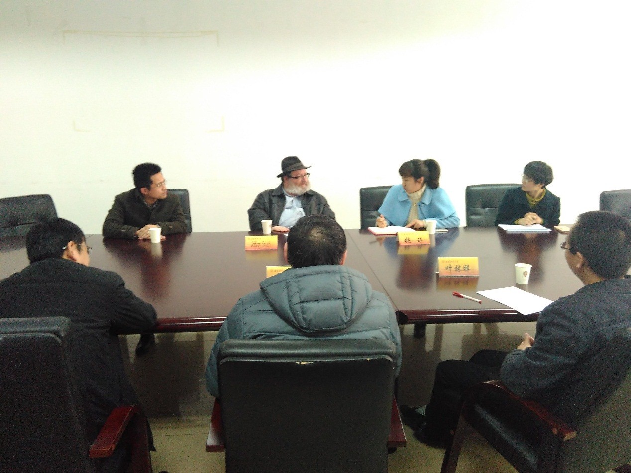 2016年2月29日下午,我院聘请的外籍教师Jeffrey Smith到岗,陈耀辉院长、叶林祥副院长、尹敬东副院长在院会议室与Jeffrey教授进行座谈,国际处张琪老师、经济系主任周绍东副教授、教务秘书孔伟老师、外事秘书屈超老师参加座谈。