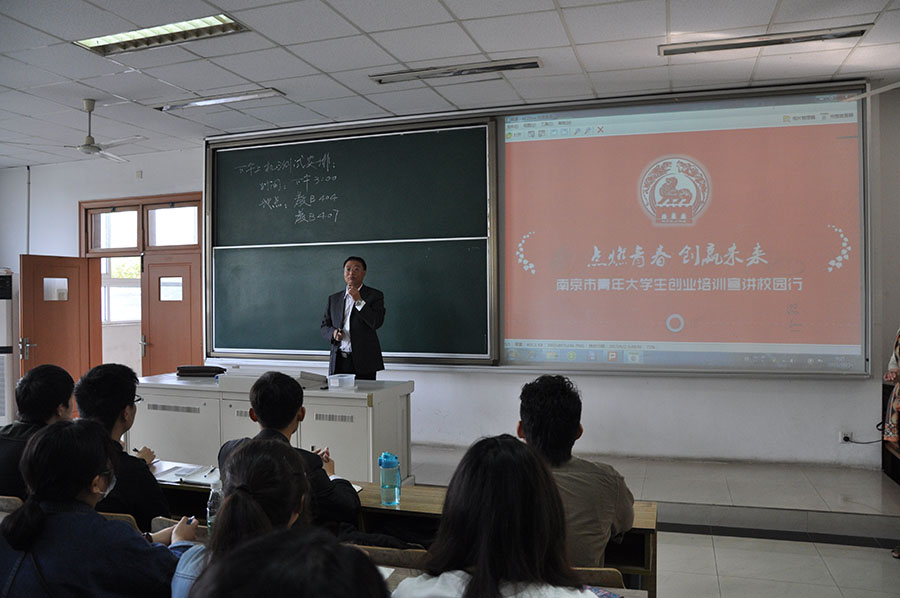 在李克强总理“万众创新,大众创业”精神的激励下,10月24日上午9时,我院联合南京中华财经进修学院、育仕创业职业培训学校共同开展了大学生创业宣讲校园行活动。