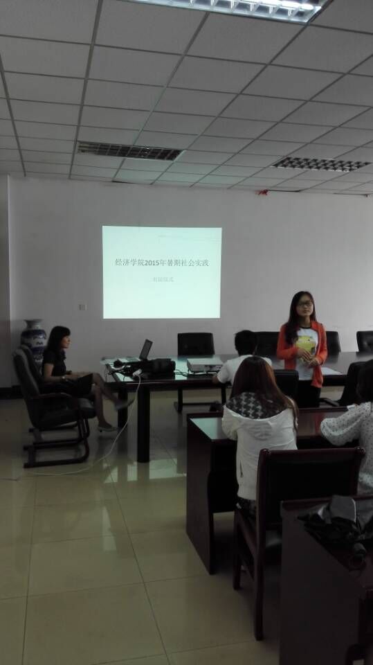 徐昊翔老师首先作了讲话。她向同学们强调了暑期社会实践对锻炼同学们的综合能力、提升同学们对专业知识的理解运用乃至于提升经济学院综合实力的重要性,并向同学们介绍了暑期社会实践的具体要求和往年我院所取得的成绩,表达了对同学们脚踏实地、实事求是、做出成绩的期望。随后,在她的介绍下,具有暑期实践经历、取得过一定成绩的田婷婷同学向大家介绍了在活动组织策划、中期进行以及后期宣传方面的经验,以期对今年大家的实践得到促进。
