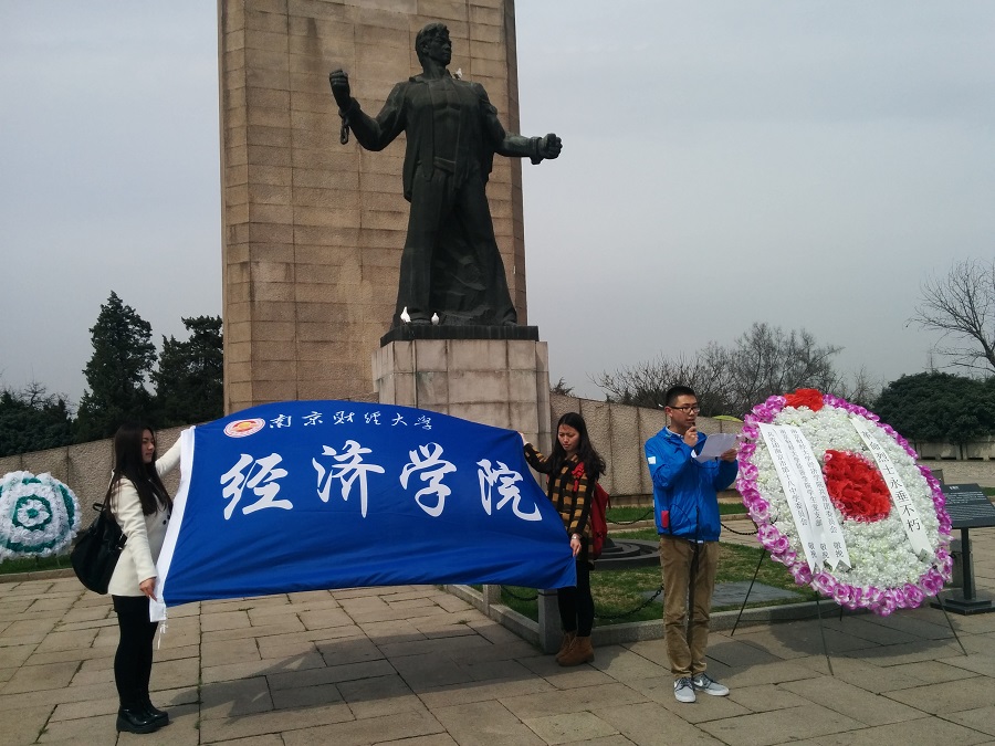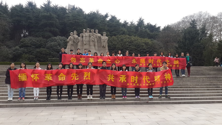 白菊一束祭先烈,心唤春风慰英魂。清明节是缅怀先人烈士,弘扬爱国精神的特殊日子。2015年3月23日,经济学院全体学生党员和第三期青马班学员前往雨花台烈士陵园进行了主题为“弘扬革命先烈精神,践行社会主义核心价值观”的清明祭扫活动。