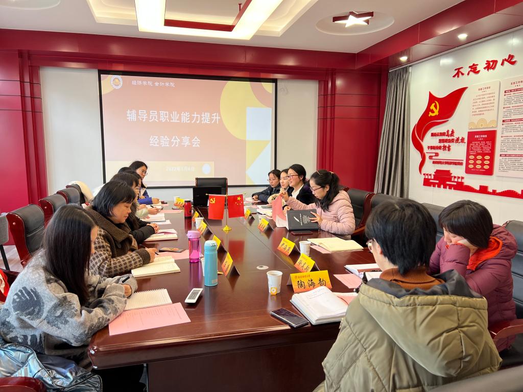 1月6日,由我院经灵生涯工作室主办的辅导员职业技能提升经验分享会在德经楼329会议室举行。活动特邀会计学院党委副书记刘颖和部分辅导员老师参加,学院副书记袁怡琨主持,学院全体辅导员参加此次活动。