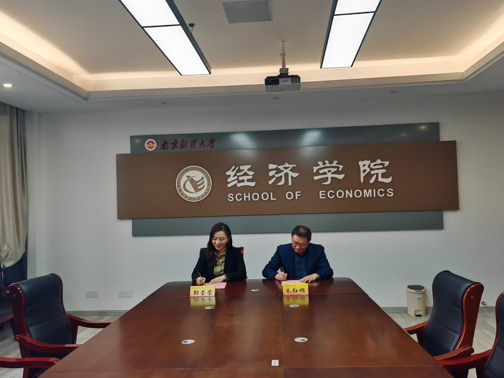 首先,朱红根院长从经济学院历史沿革、科学研究、人才培养、师资队伍、学科优势等方面详细介绍了学院情况。朱院长表示学院近年来整体发展迅速,全院上下始终围绕国家战略和江苏经济发展需要,不忘初心、砥砺奋进,在人才培养、科学研究、社会服务等方面取得了一系列喜人的成绩,为双方合作办学奠定了良好基础。他希望,双方充分发挥各自办学优势和就业优势,共同致力于培养创新型和学科交叉复合型数字经济人才,深化合作,实现共赢。