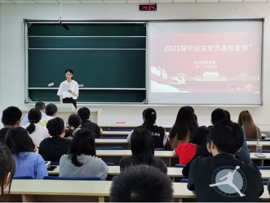 为切实做好毕业生党员党性教育,坚定毕业生党员理想信念,5月19日下午,我院在德经楼116教室举办2023届毕业生党员离校教育活动,学院党委书记张圣兵出席活动并为全体毕业生党员讲授大学最后一堂党课,2023届毕业生党员参加活动。会议由学院本科生第二党支部黄晓娟老师主持。