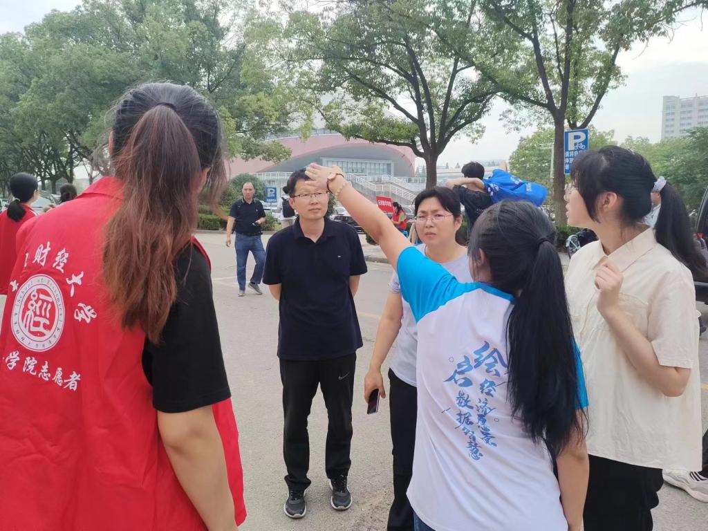 领导亲临,慰问关心。上午,学院党委书记张圣兵、院长朱红根、党委副书记贾亦璞及其他院领导早早来到学院迎新点了解新生接待工作与准备进展,认真查看新生报到每个环节,亲切慰问一线工作人员,并与现场师生志愿者、辅导员一起参与迎新工作。院领导们与新生亲切交谈,热情问候报到新生并为其耐心答疑,为绿色通道学生送去暖心大礼包,与大家亲切合影,欢迎他们在南财开启人生崭新篇章。今年的新生中有两名同学在报到当天迎来生日,学院为他们准备了生日蛋糕、贺卡和礼物,学院党委书记张圣兵、副书记贾亦璞到宿舍现场送上祝福。如沐春风的关怀驱散了新生们初来乍到的距离感,为新生们尽快融入经济学院大家庭及时注入“强心剂”。