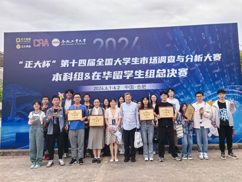6月1日,由中国商业统计学会主办的“正大杯”第十四届全国大学生市场调查与分析大赛(本科组及在华留学生组)全国总决赛在合肥工业大学举行,我校学子经过全力奋战,获得本科组全国一等奖2项、全国二等奖2项、全国三等奖8项,以及在华留学生组全国一等奖1项、全国二等奖1项的好成绩。此外还获得本科组江苏省一等奖6项、二等奖6项、三等奖8项。作为江苏省赛区的承办单位,我校也获得了“最佳赛区组织奖”和“最佳院校组织奖”。