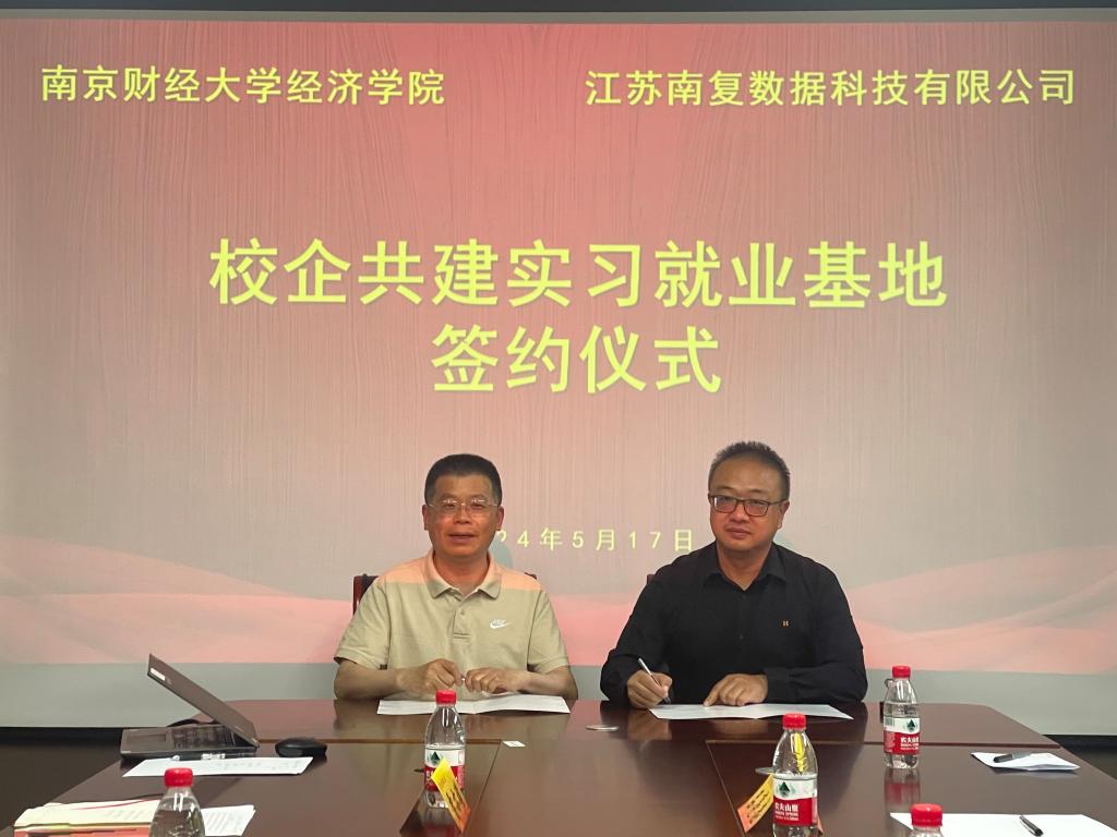 5月17日下午,我院“大学生就业实习基地”签约授牌仪式在德经楼323举行。学院党委书记张圣兵、副书记贾亦璞、学工办主任梁少颖、教师代表李昌峰,上海南复数据科技有限公司张俊总经理、江苏南复数据科技有限公司总经理吕亮志、人事经理杨红等出席本次活动。