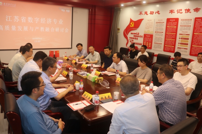 2024年7月5日经济学院329会议室成功举办数字经济专业高质量发展与产教融合探讨会。此次研讨会邀请了众多开设数字经济专业的院校代表及业界的资深专家共同参与,旨在深入探讨和推进数字经济专业教育的前沿发展,以及如何培养符合新时代需求的数字化经济人才。与会专家包括:上海财经大学数字经济系副系主任肖升生,泰州学院经济与管理学院院长朱军,苏州大学数字经济与贸易系副主任葛新宇,扬州大学经济系主任时磊,经济系副主任陈杰、陈拼博,宿迁学院王亚宁,以及新道科技股份有限公司的业界代表。我校教务处处长朱红根、经济学院副院长(主持工作)刘小峰、数字经济系系主任华中昱、副主任孟浩以及部分教师代表参加会议。