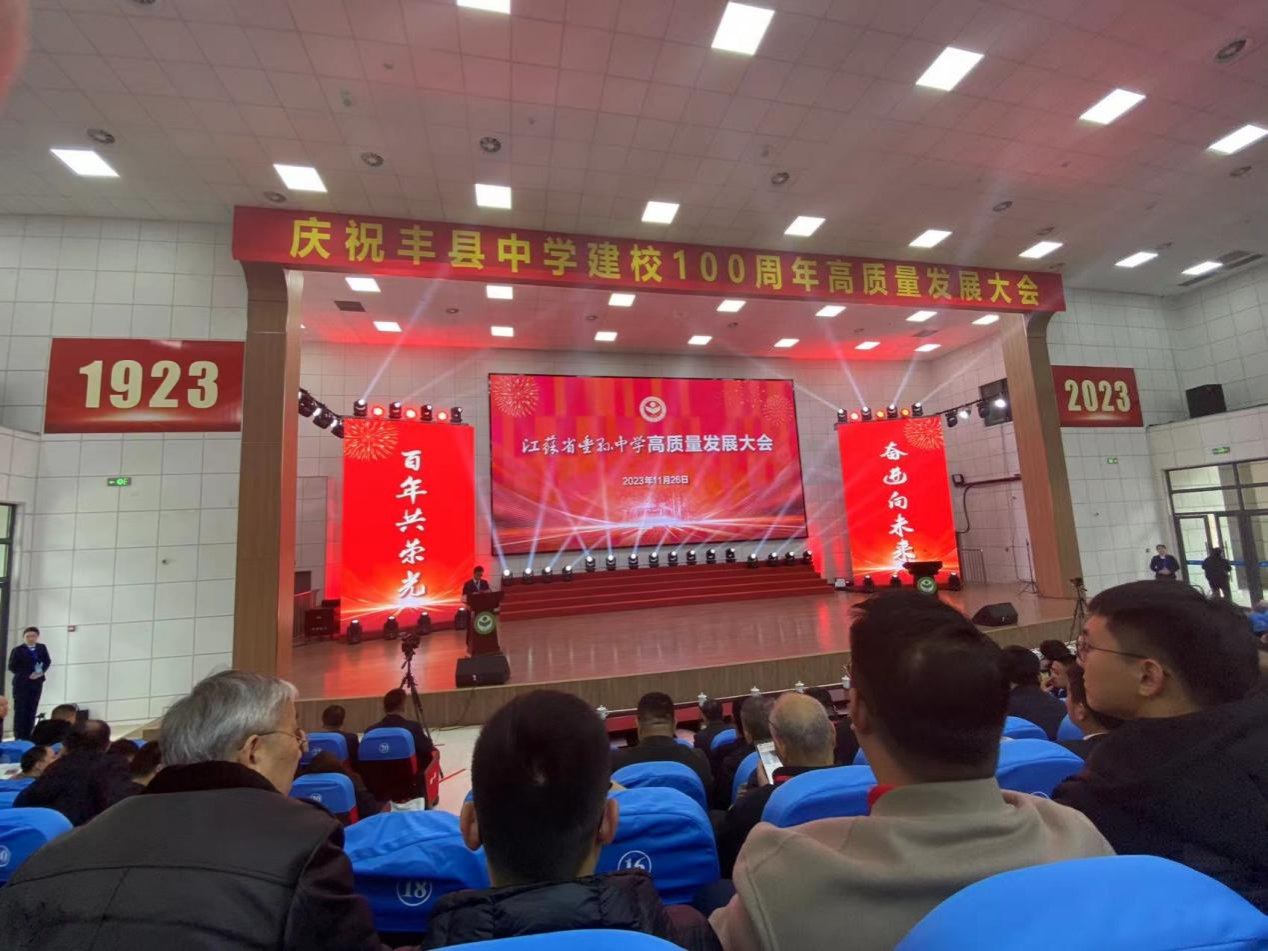 为提高南京财经大学在徐州丰县地区的招生宣传工作力度,进一步吸引丰县的优质生源报考我校,2023年11月,学院招生宣传老师张闻赴江苏省丰县中学参加100周年校庆高质量发展大会,并代表学校致以诚挚的祝福。