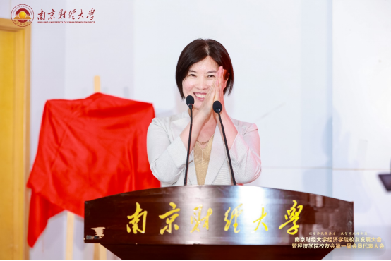经济学院校友会第一届理事会会长管有英校友发言,她表示,将与理事会成员一起,以“服务校友、回馈母校、贡献社会”为宗旨,将经济学院校友会打造成为校友联络的情感纽带,支持在校学生成长的育人平台,反哺学校学院事业发展的永续引擎。