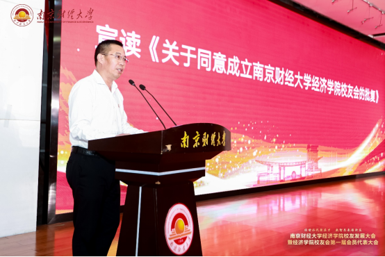 王冲同志宣读《关于同意成立南京财经大学经济学院校友会的批复》