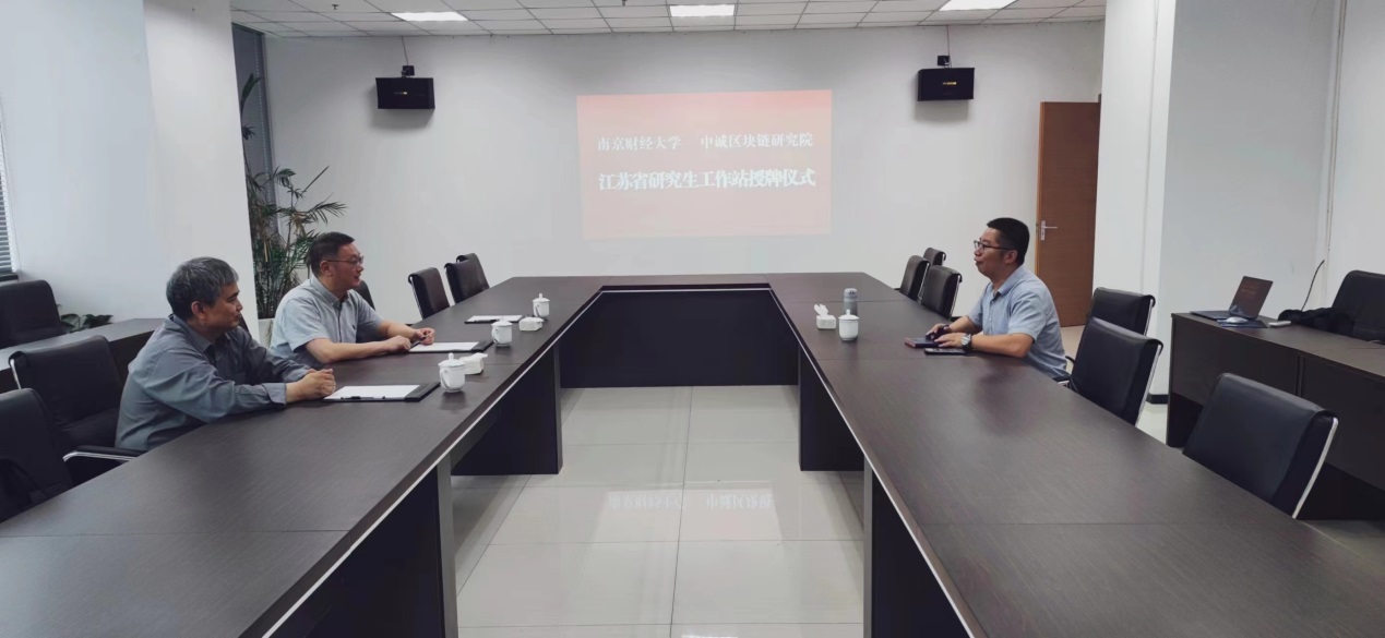 双方一致认为,要以本次交流为契机,进一步加强校企联系与沟通,发挥各自资源优势,在科学研究、人才培养、社会服务等广泛领域持续开展深化合作。座谈结束以后,还举行了南京财经大学-中诚区块链研究院(南京)有限公司省级研究生工作站挂牌仪式。