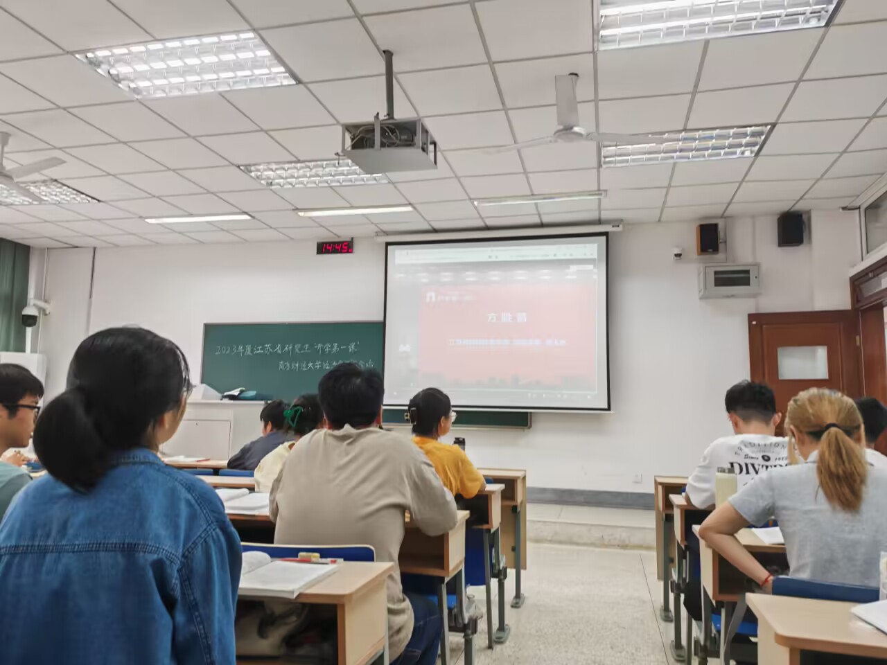 9月26日下午14点30分,经济学院2023级研究生在德经楼210教室共同观看由省教育厅与省科协共同主办的江苏省研究生“开学第一课”,聆听专家院士对“青年担当”的诠释与指导。