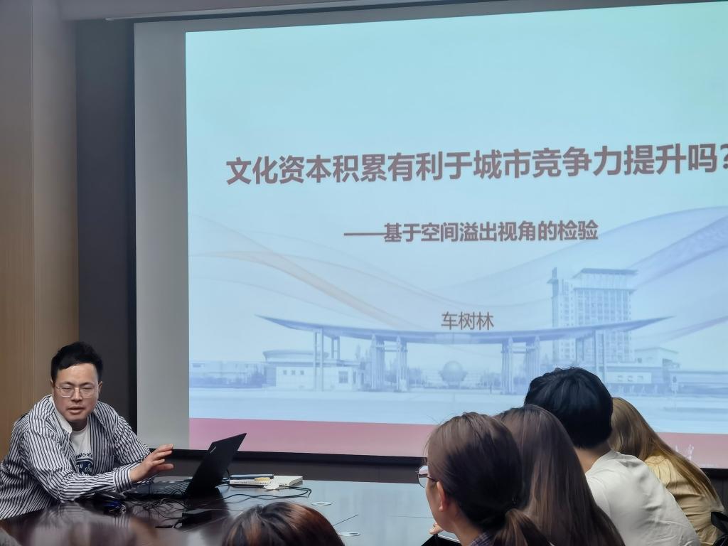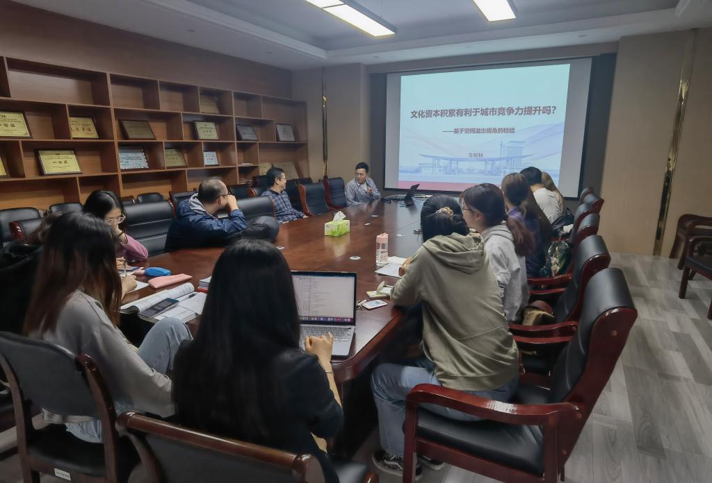 5月26日下午,经济学院在德经楼329会议室成功举办了本学期第三期双周学术论坛。本期论坛由经济系车树林博士带来题为《文化资本积累有利于城市竞争力提升吗?——基于空间溢出视角的检验》的学术讲座。学院部分老师和研究生参与讲座。