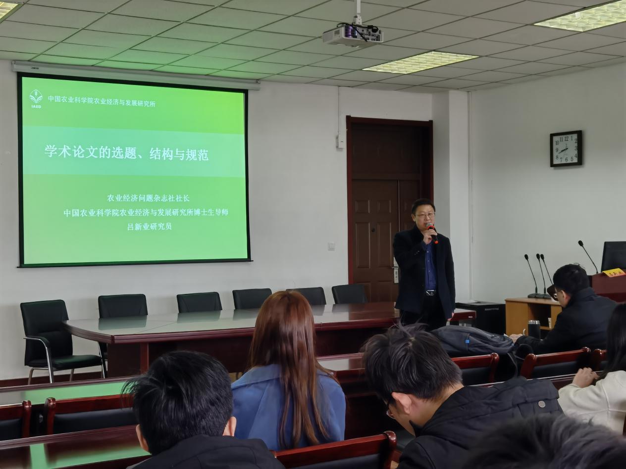3月20日,《农业经济问题》杂志社社长吕新业研究员应邀为我院师生作了题为“学术论文的选题、结构与规范”的学术报告。报告会由院长朱红根教授主持,学院青年教师代表和部分研究生参会。