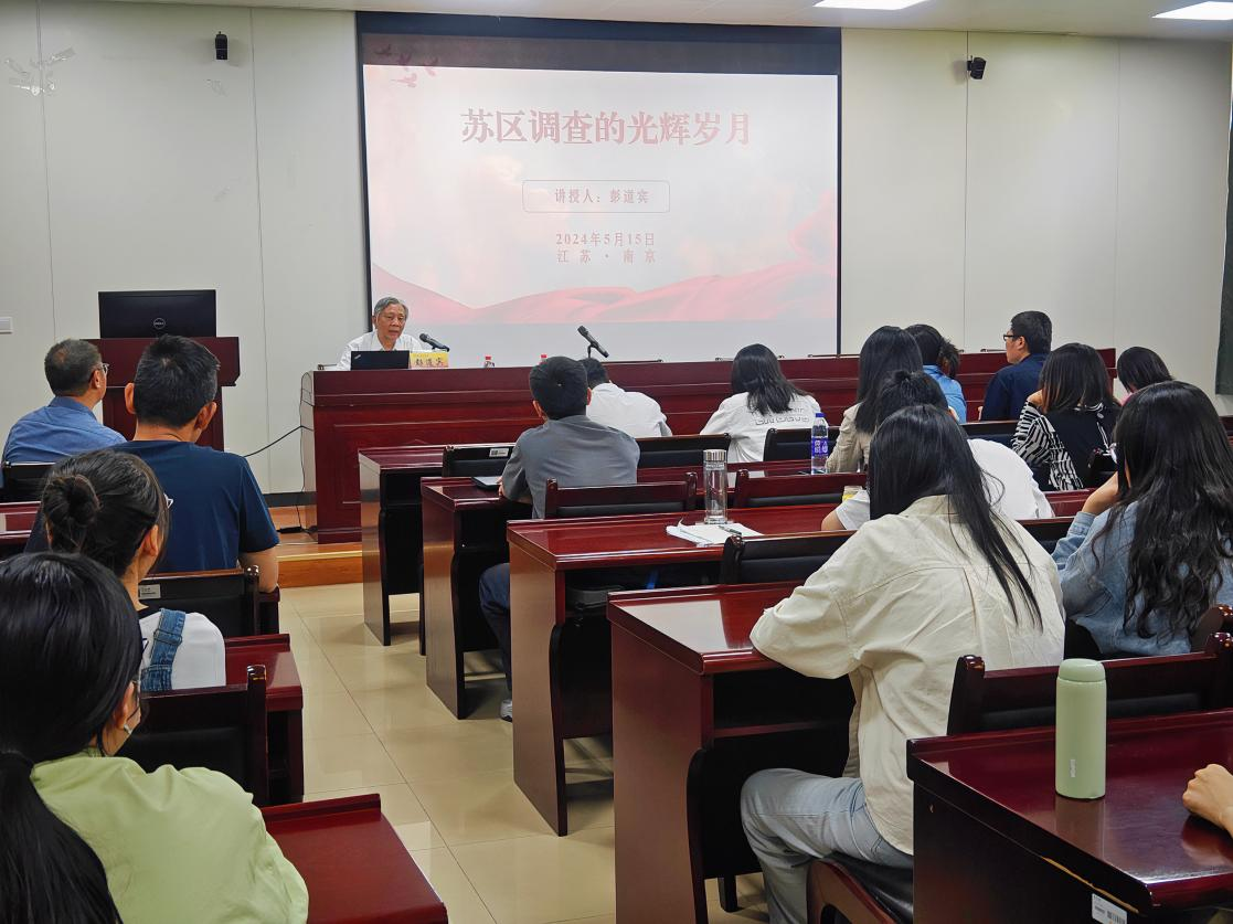 2024年5月15日下午,南京财经大学仙林校区德经楼307会议室座无虚席,著名统计学家、经济学家彭道宾教授在此发表了题为“苏区调查的伟大实践与理论探索”的演讲。彭教授不仅是江西师范大学苏区研究院的首席研究员,也是江西省统计局的巡视员和新闻发言人,他的研究成果在国内外享有盛誉。