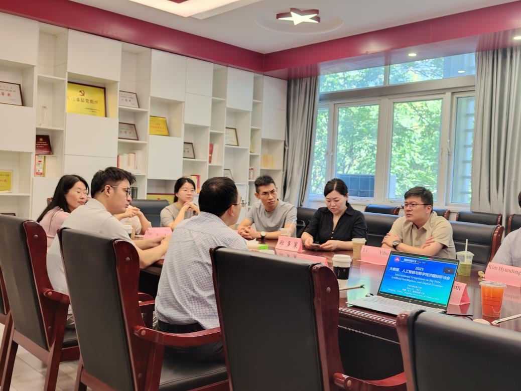 2025年8月23日上午,由南京财经大学经济学院主办的“大数据、人工智能与数字经济国际研讨会”在德经楼329会议室成功召开。会议聚焦大数据与人工智能在数字经济中的前沿应用,吸引了来自中韩两国多所高校的专家学者参与,围绕相关学术议题展开了深入交流,并就数字经济与统计学科的融合发展进行了合作探讨。会议首次采用AI同声传译软件在线翻译,实现中韩语无障碍交流。